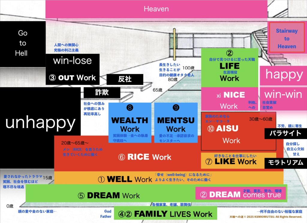 では次に、「天職」を②LIFE Workとして、誰もが行きついてはならない対立概念のことに少し触れておく。