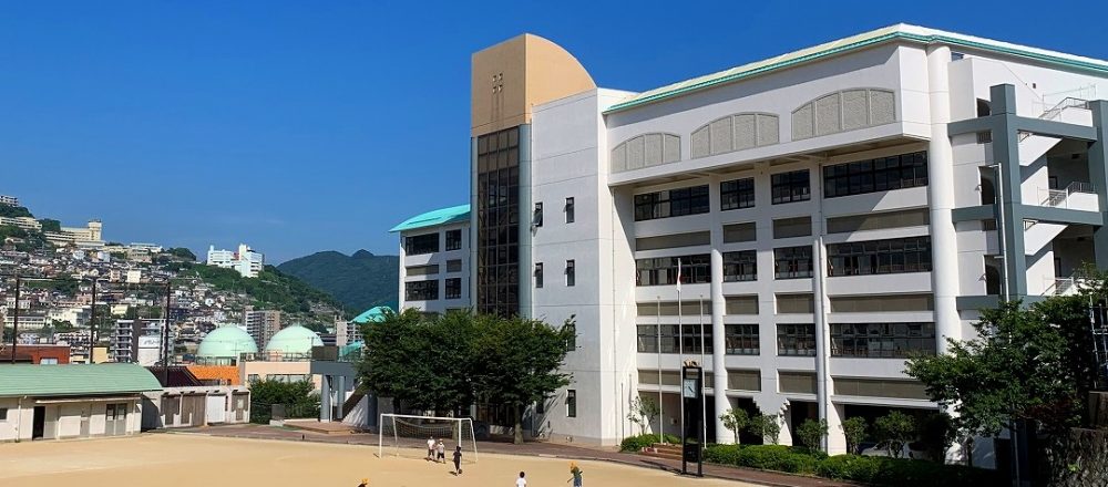 稲佐小学校は、山頂展望台まで観光客を運ぶ長崎ロープウエイの淵神社駅のすぐそば、つまり稲佐山の麓にある。