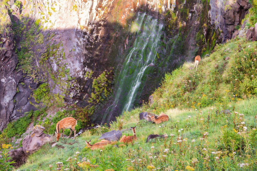 フレペの滝は、知床半島プユニ岬東の断崖からオホーツク海に流れ落ちる滝で、滝そのものの魅力もさることながら、ここには知床半島の海と山と滝、そこで暮らすエゾシカをはじめとする様々な野生動物など知床の魅力が凝縮された場所と評されていて、「知床八景の中で最も気軽に世界自然遺産を散策できる」その値打ちがすごい。