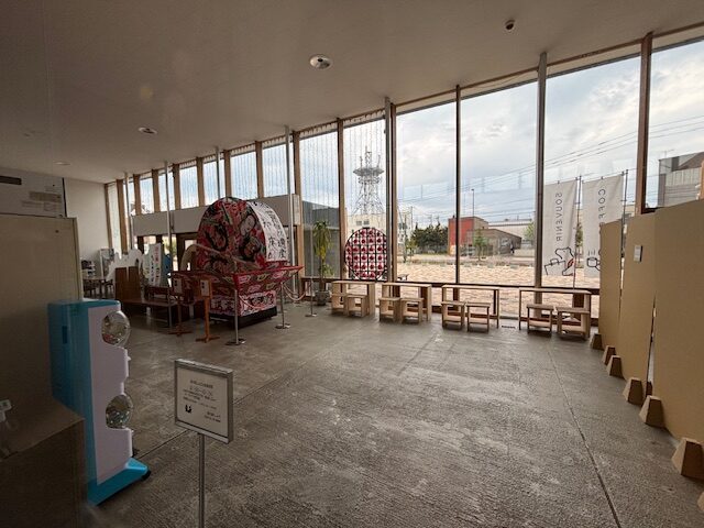 目を引くのは、斜里町の友好姉妹都市・弘前市から伝授され作られた「扇ねぷた」の山車。ホール中央に展示されている。
