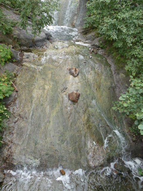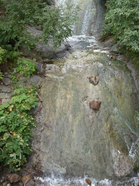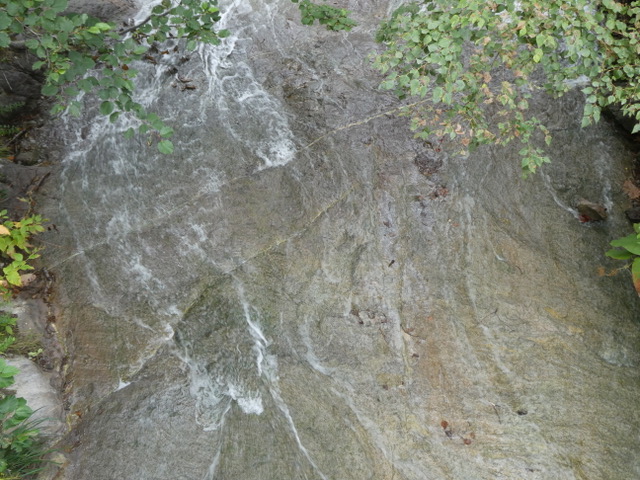 凸凹の岩肌を滑り落ちる、末広がりの面白い形だ。