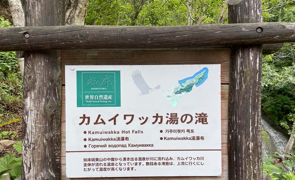 秘境・知床を代表する滝の1つであり、かつて滝のそばで硫黄を採掘していた小屋跡の柱が残っている。