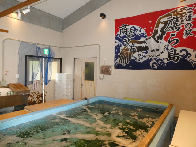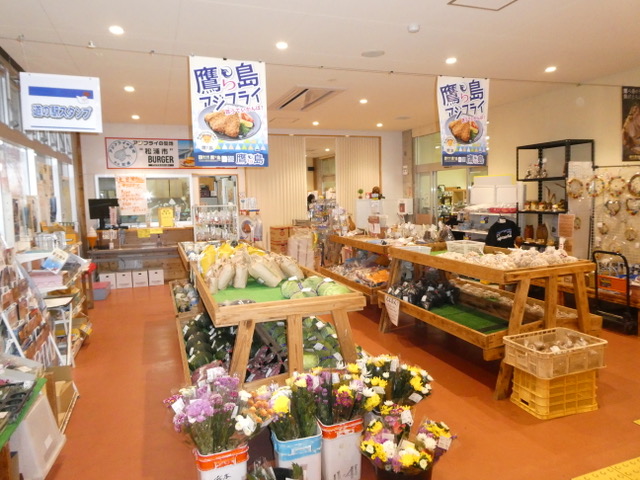 人気は、新鮮な魚介類が手に入る海産物直売所。トラフグ、鷹島マグロ、ブリ、さざえ等が販売されている。