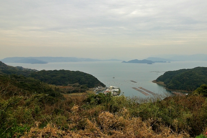 元寇のおびただしい船が沈む鷹島海底遺跡の海域を、展望台から望む。