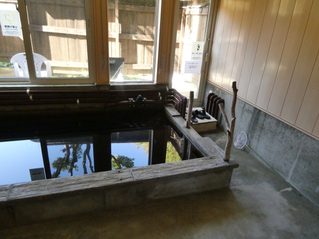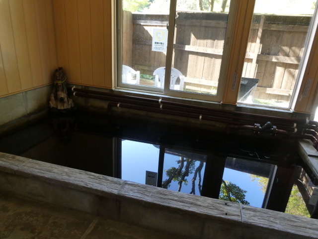 湯船には黒いものが浮いていたり、沈殿していたり。すわゴミか?と驚くが、これが湯の花。温泉の匂いはあまりしないが湯の花はたくさんすくうことができた。