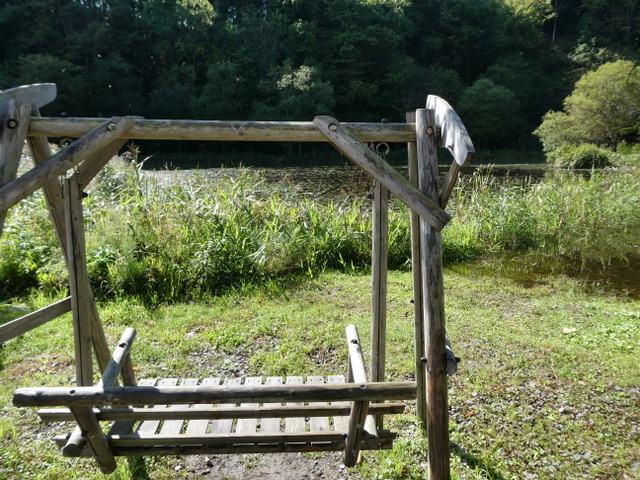 施設の外の庭、ブランコやベンチがなかなかいい。