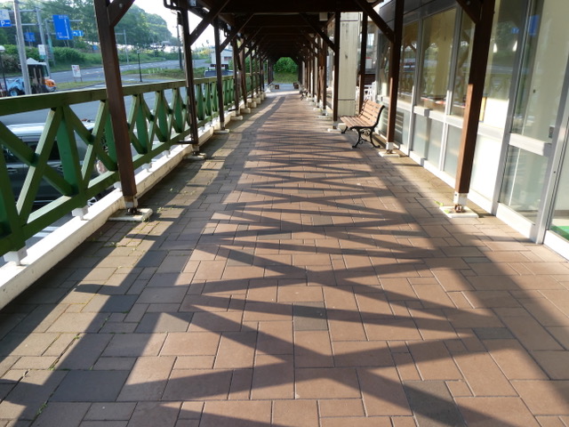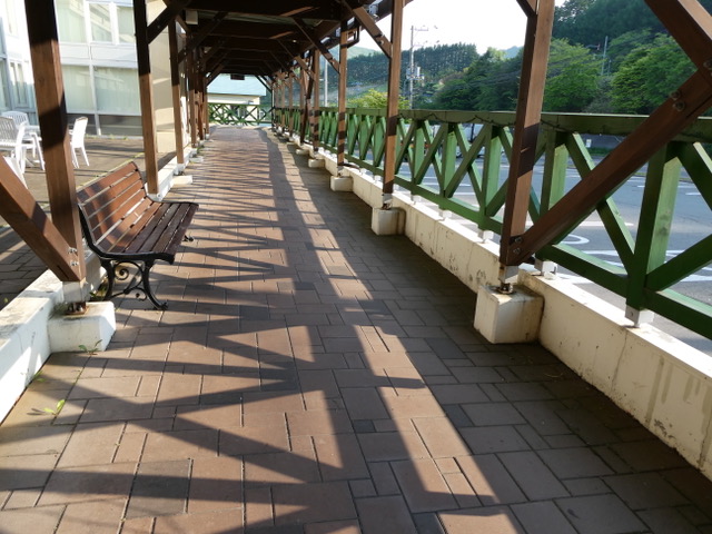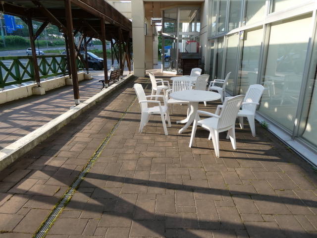 休憩環境としては、施設の前にベランダ上に東西に長く続いている休憩スペースが、日当たりが良くてとてもいい。