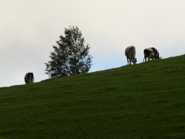 マイルドセブンの丘にはいくつかのビューポイントがあって、まずはマイルドセブンの丘入口にあるカラマツ林のある丘。さらに丘を進むと二本のポプラが離れて立っている兄弟の木がある。尾根のピーク付近でY字に交差して、マイルドセブンの丘の裏側には、牛が放牧されていた。