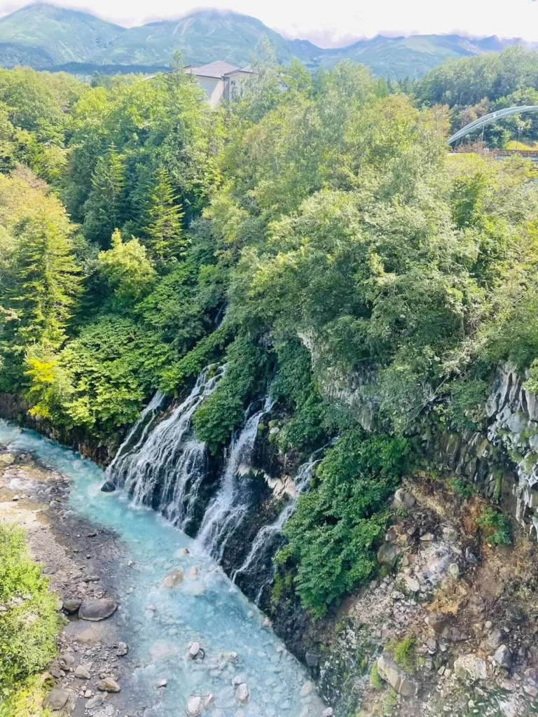 大雪山や十勝岳連峰が望めるビュースポットだが、ここからは近くを通る北海道道966号沿いにある「白ひげの滝」が近い。