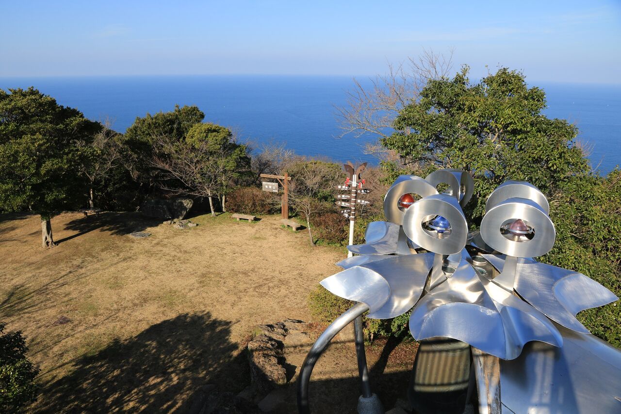 日本最西南端に位置する標高198mの山頂は、東に天草灘、西に五島灘、南に東シナ海を一望でき、朝陽と夕陽の美しい場所である。