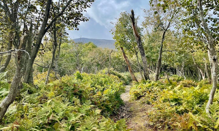 そんなに高い山ではないので、7合目から私の遅い歩みでも約1時間で外輪山の最高地点である東山(1,022m)に到達できる。距離が短いとはいえ、登山道は火山礫(れき)がゴロゴロしていて転びやすい。うっかりしていると足をくじくので、要注意である。