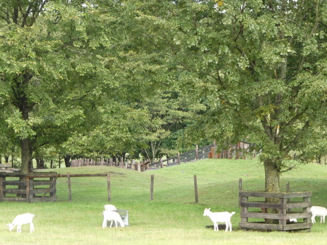 メドウガーデンの先にあるファームガーデンでは無農薬野菜が栽培され、広い草原の中でヤギが放牧されている。