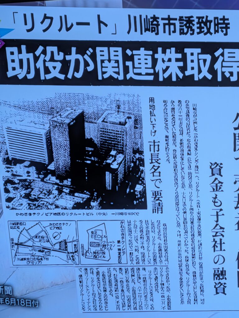 そして1年10ヶ月経った1986年10月30日のコスモス株店頭公開で、1億2000万円という大金を手にした川崎市助役の振る舞いが不自然で、リクルートがコンピュータ事業のために川崎駅前に建てたビル建設に疑惑があるのではないかと睨んだ朝日新聞横浜支局が、彼とリクルートとの関係を追いかけ始めた。