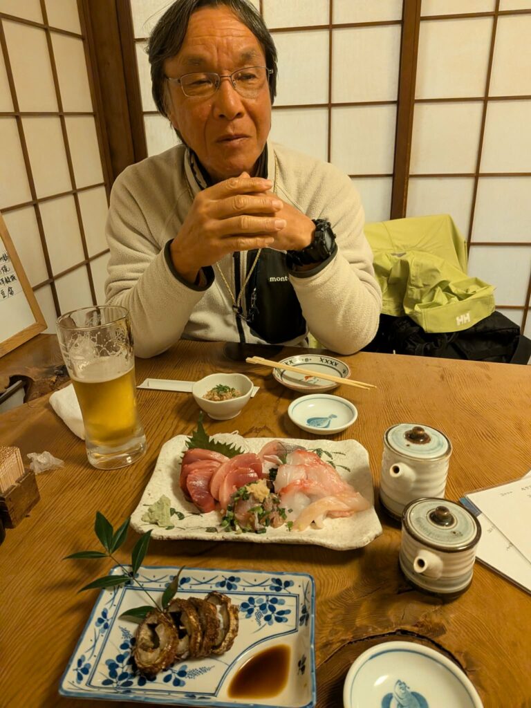 「ちょっとカッコ良すぎません?僕なら絶対もらいますよ。旅の資金もカツカツですし。お金の余裕があったら、道具を買って釣りもしたいな。実は僕、淡路島育ちでして、子どもの頃、イカ釣り漁船に乗せてもらって、イカを釣った経験はあるんですけどね」と口を滑らせてしまうと、「越生くん、明日の早朝、沖に一緒に出てみる?」