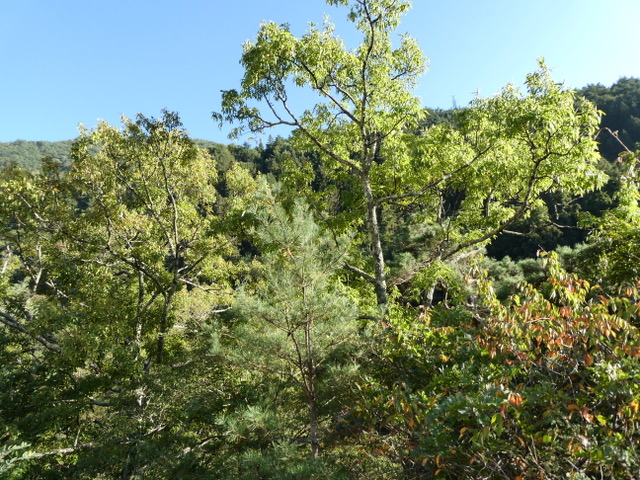 ここから左手に下りていく登山道があって、今回の目的はこの登山道からの紅葉狩りだ。