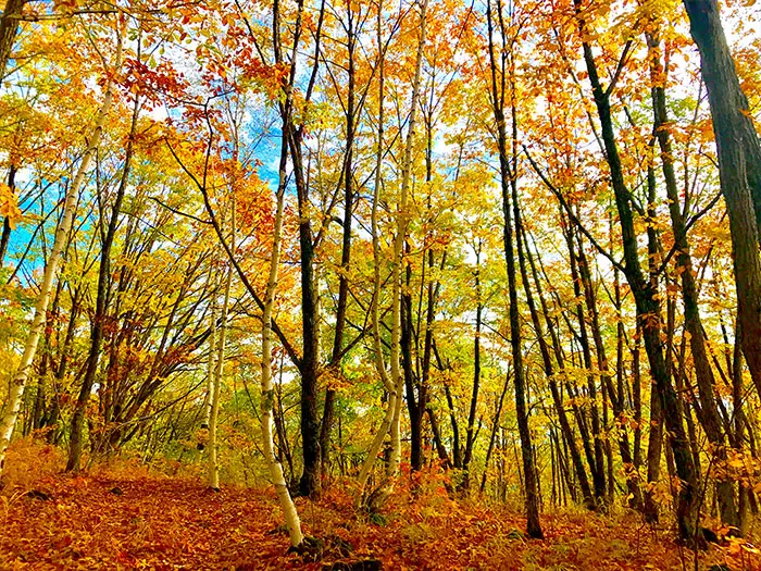 バスに乗ってしばらく経ち、三本滝バス停あたりでは、観光センターあたりの木々の色付きはまだまだで緑色だったが、徐々に木々の色が変わってくる。