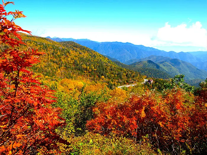 山頂部では9月の中旬から色づき始め、9月下旬から10月上旬にピークを迎えた後、紅葉は少しずつ高度を下げていき、10月下旬は高いところまでは車で行けない乗鞍の、麓の高原一帯の紅葉を楽しむことができる。