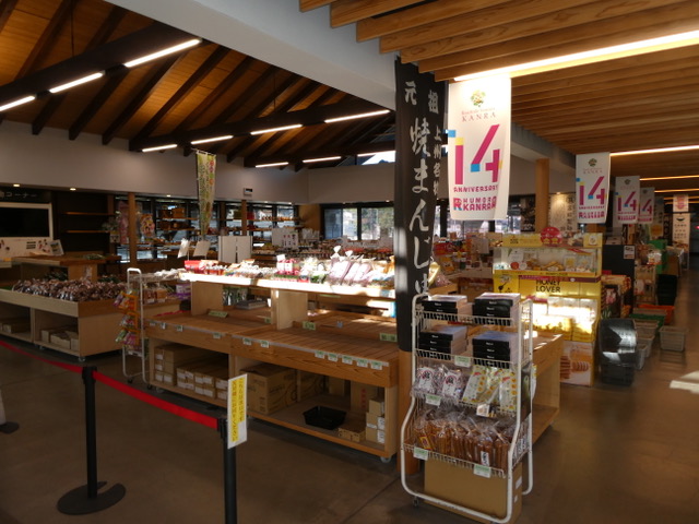 当たり前だが甘楽町および群馬県の特産品が最も多く、甘楽町の特産品では「甘楽の里プチまんじゅう」「甘楽ようかん」「甘楽ポテト」、甘楽なたね油を使った「チーズやきもち」、マスコット「かんらちゃん」がプリントされた「かんらちゃんソフトサブレ」など、近隣市町村の特産品では「磯部煎餅」「下仁田ネギ煎餅」「上州焼き饅頭」などが売られていた。