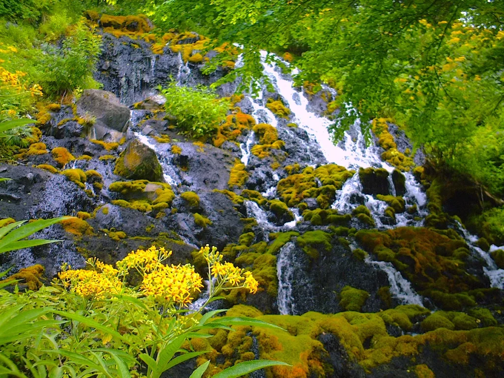 オンネトーの西には、2000年に指定された北海道で最も新しい天然記念物オンネトー「湯の滝(写真下)」もある。