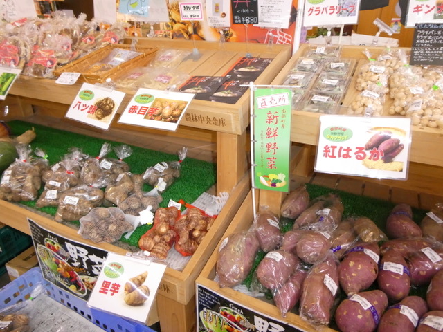 駅の施設としては、農作物直売所を兼ねた物産館とレストラン。 規模はそんなに小さくないが、利用客数はかなり少ない。 もちろん今回私が訪れたのは、筍の旬の時期とは真逆の秋。 店内で筍関連の商品を探しても、筍の缶詰と、竹の子まんじゅうぐらいだった。