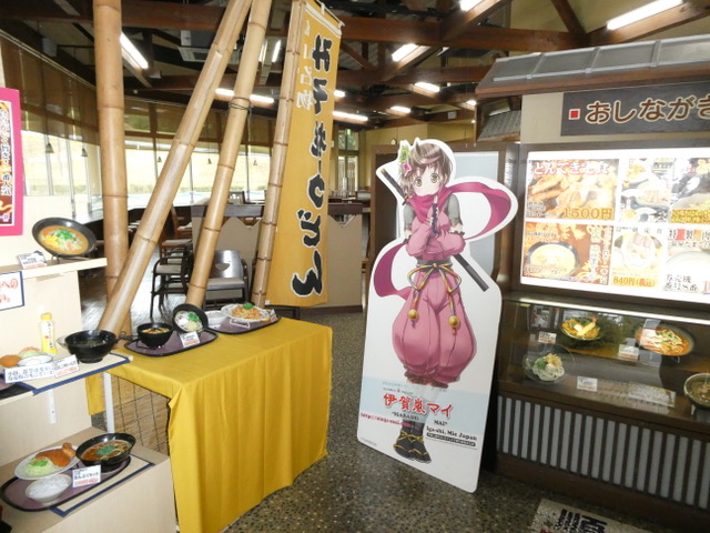 伊賀名物としては「日本一硬いせんべい」として有名な「堅焼き」、伊賀忍者を彷彿させる「伊賀手裏剣クッキー」、ソフトクリームの中につぶ餡が隠れていることから命名された「忍者ソフトクリーム」など。