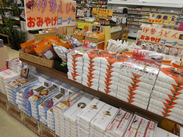「松阪牛肉味噌」「松阪牛ラーメン」「松阪牛カレー」「松阪牛サラミ」など松阪市の特産品、さらに「赤福」「伊勢うどん」「伊勢餅」「伊勢海老あられ」といった伊勢市の特産品も。