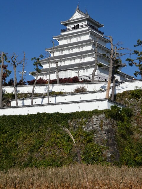 内郭は堀にかこまれた本丸・二の丸を設け、その北には藩主の居館である三の丸。本丸には安土桃山式建築の粋を集めた総塗り込めの五層の天守閣をはじめ、3か所に三層櫓がそびえ立つ豪壮堅固な城構えである。