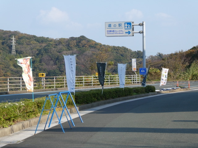 やがて道路に刻まれた溝と車輪によって産み出される「みかんの咲く丘」のメロディー道路を過ぎると、道の駅の看板が見えてくる。
