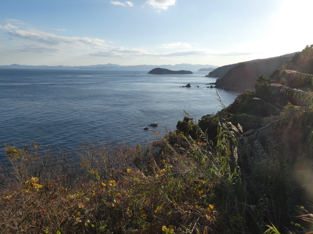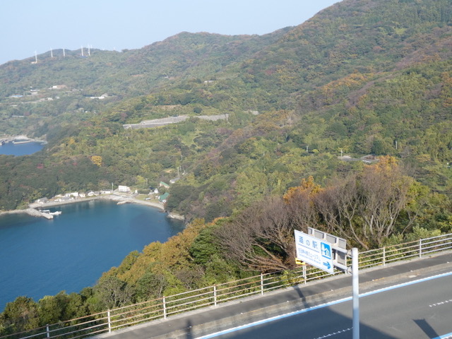 沿道の国道197号線は「日本一細く長い半島」と呼ばれる佐田岬半島の尾根部分を突き抜ける道。 道中は殆どが山林の風景だが、時々現れる左右両側に広がる海の景色が実に素晴らしい。