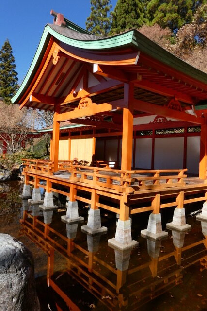 もちろん銅板葺きの装いは、800年以上前の当時ではあり得ない。火災防止の観点から昭和38年に銅板葺きの装いに変更されたものである。元々はもちろん茅葺き屋根だった。