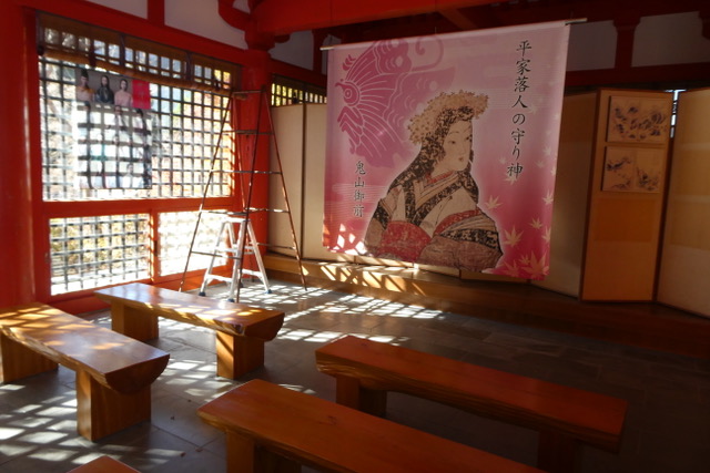 ここには平家ゆかりの品を数多く展示する資料館のほか、神楽やイベントが行われる能舞台や、茅葺きの古民家を移築した食事処などがある。