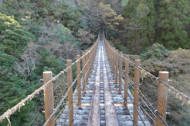 平家落人たちがつくった橋としては、源氏の討手が迫ってきた時には敵の侵入を防いでいつでも切り落とせるようにかずらを束ねて造った「祖谷のかずら橋」が残っていて、最も有名だ。