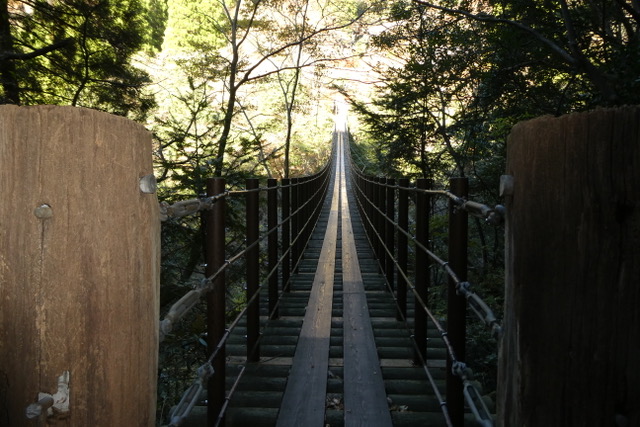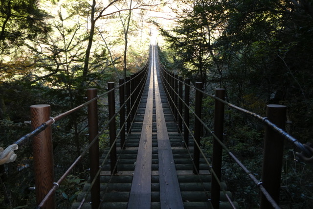 深い谷を超えてとなりの山に渡る、樅木の吊橋がある。これは長さ72mの「あやとり橋」と長さ59mの「しゃくなげ橋」という親子吊橋で、どちらも木で作られたかなり原始的な橋である。