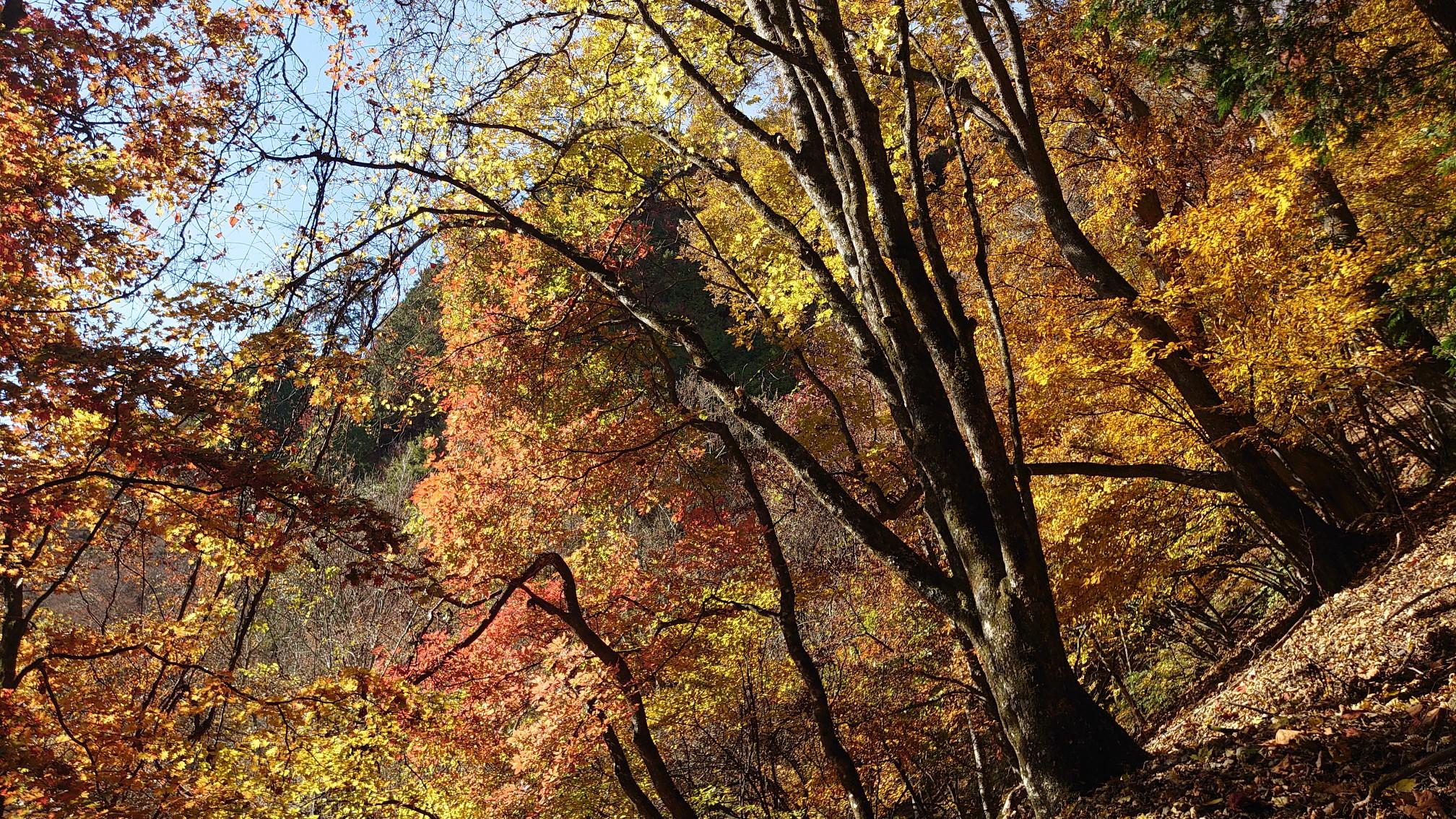 今回私は山頂付近の紅葉が終わっている時期を選んでやって来たわけだが、何を隠そうハゲを隠そう、もはや頂上までは行く気も体力もないからであり、登山口付近まで紅葉が降りてきているタイミングで清滝小屋付近までは行って、紅葉を大いに楽しんだ。