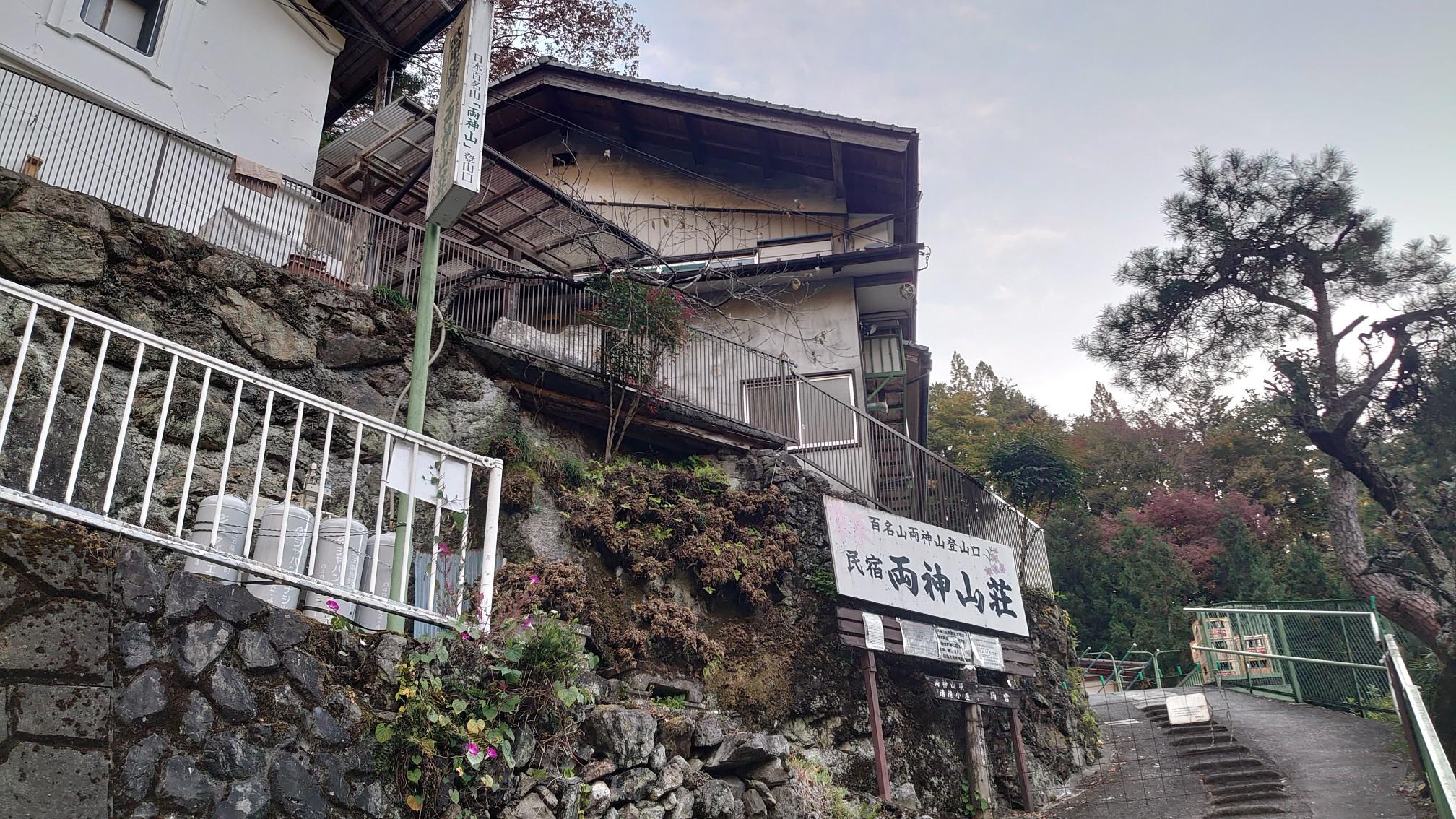 山頂へと至る道も、私のゴールである途中の清滝小屋への道も、この両神山荘前から始まる。