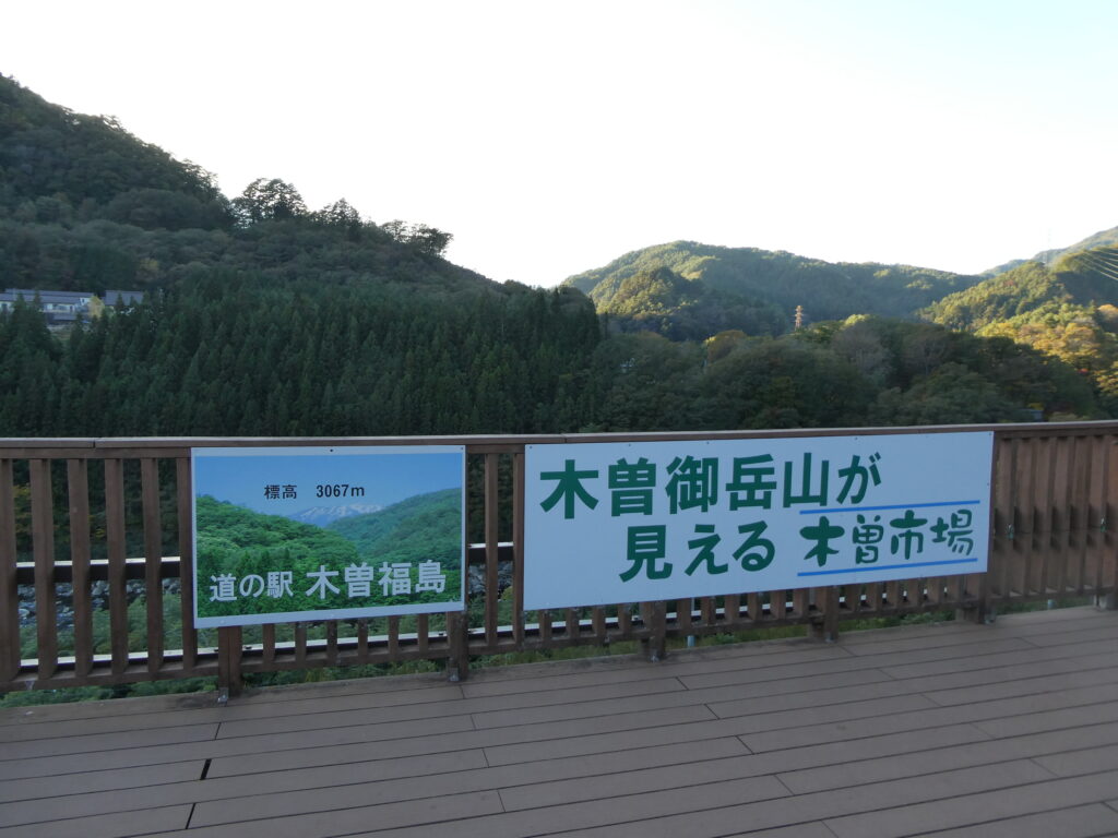 今回この道の駅から木曽駒ヶ岳、駒ヶ根方面へアクセスしたわけだが、国道19号線沿いでは唯一、逆方向(西)に、木曽御岳山を見渡すこともできる。