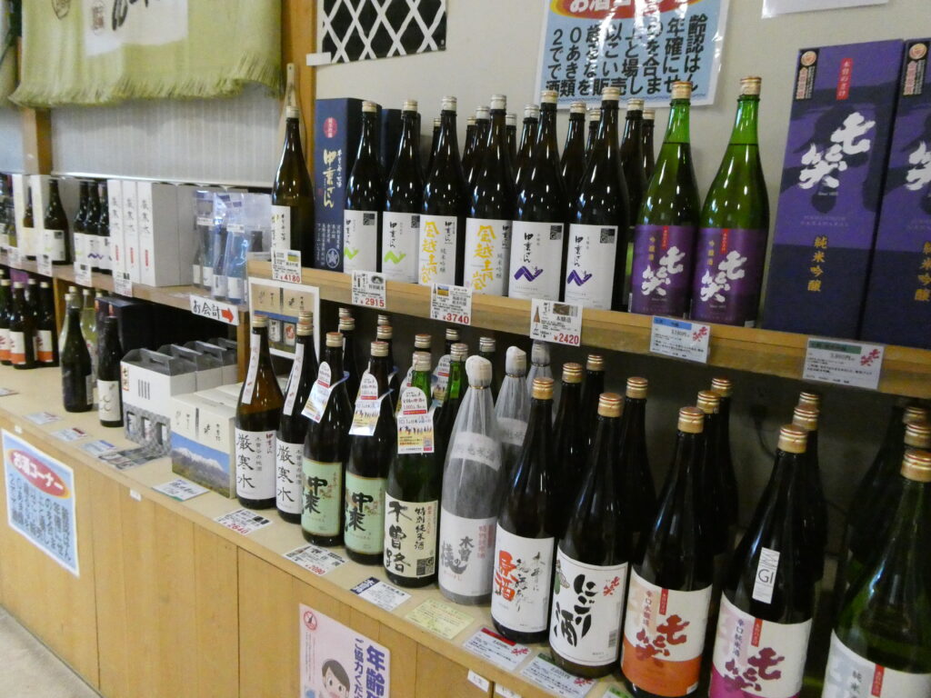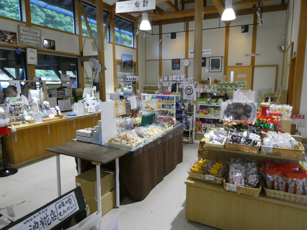 御嶽山側にある開田高原の商品「開田高原コーンスープ」「開田高原ヨーグルト」、「信州そば」「開田そば」「鴨だしつけそば」などの蕎麦類、漬物類も木曽地方独特の「すんき」や「長芋の漬物」「わさび大根の漬物」「赤カブ漬け」「野沢菜漬け」など目移りしてしまう。