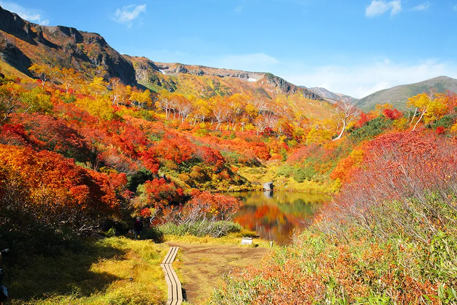 ここは例年「日本一早い紅葉」がとりあげられている北海道を代表する紅葉の名所である。