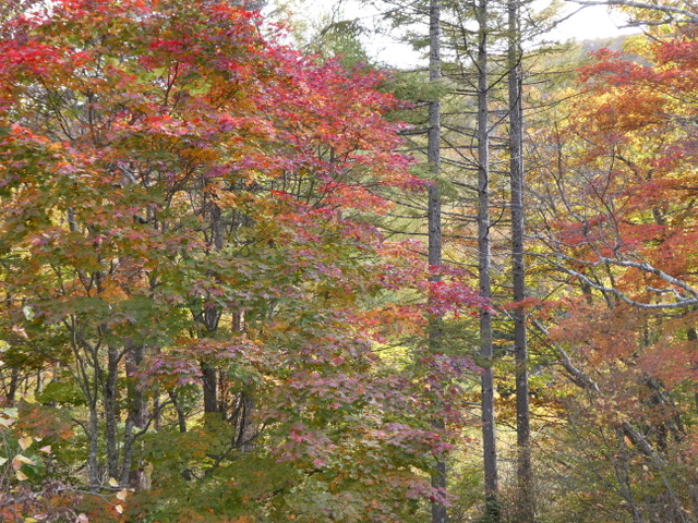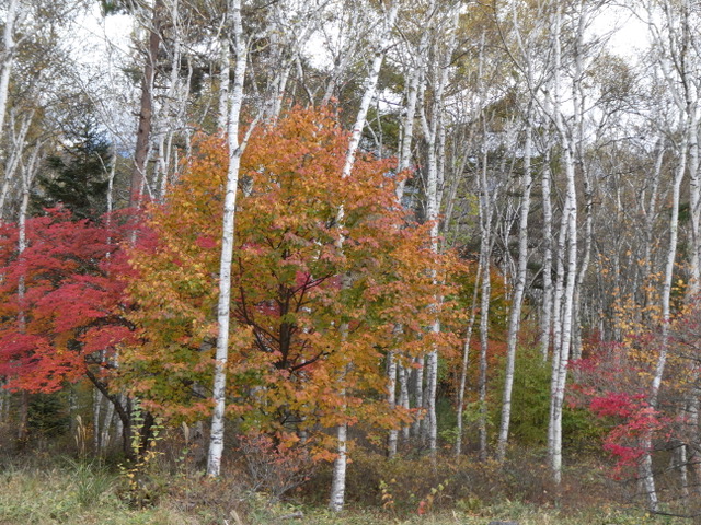 蓼科湖からしばらくは、紅葉だが、しばらくすると黄葉が目立ち始める。