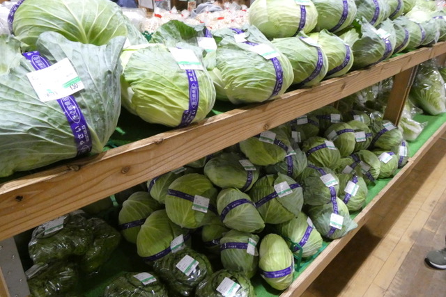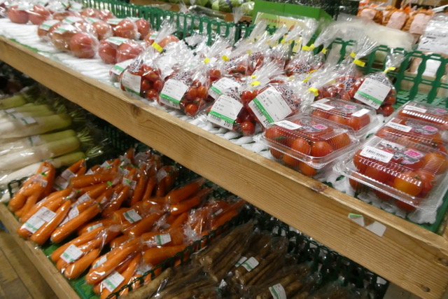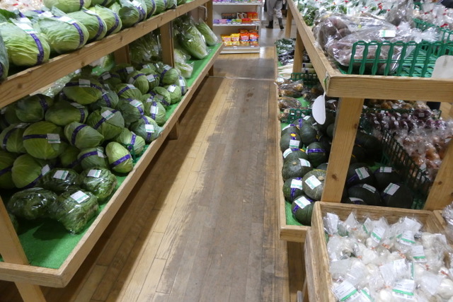 道の駅の施設は、物産館、農作物直売所、レストラン。 農作物直売所には、地産の農作物が並ぶ。