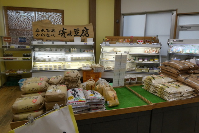 物産館では、川辺牛、川辺ヨーグルト、かわなべ焼酎など「川辺」の名を冠した商品のアピールがすごい。豆腐も川辺町の特産品だ。