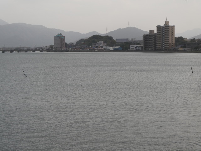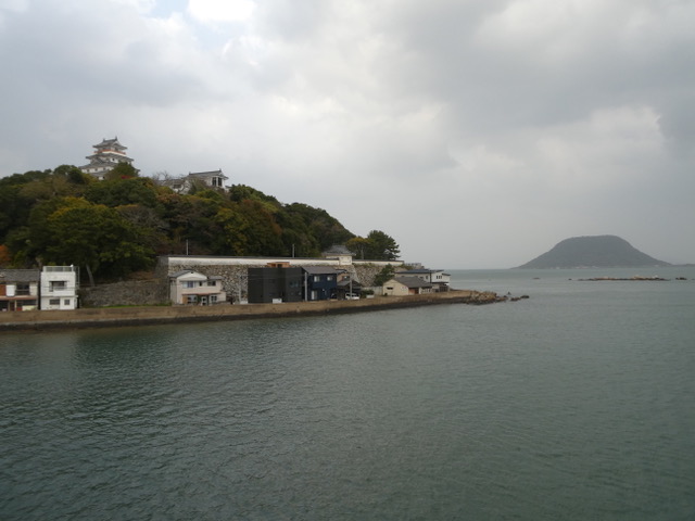 立地に特徴があって、満島山と呼ばれる陸続きの島に建てられたので、三方を海と川に囲まれた、いわば要塞である。