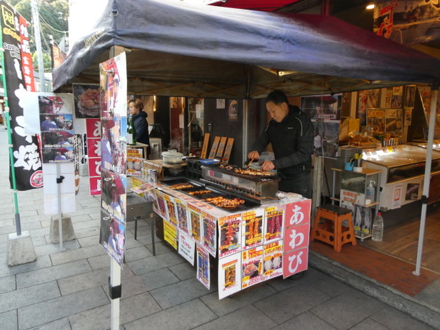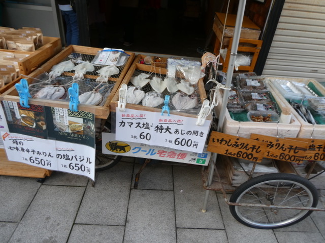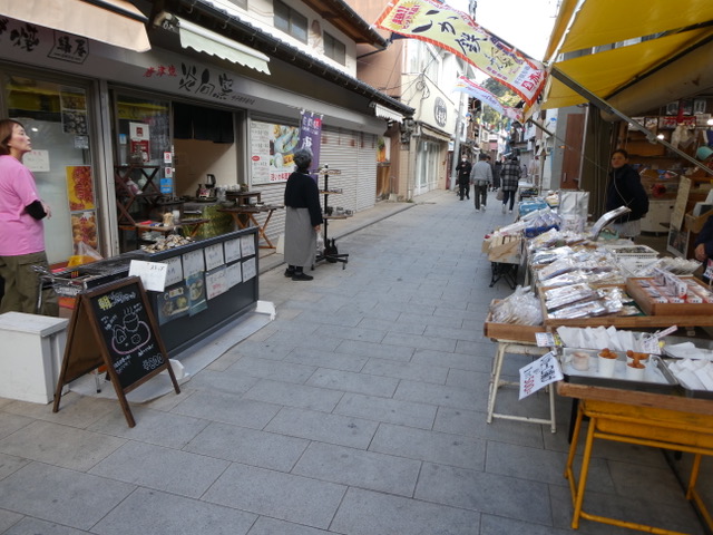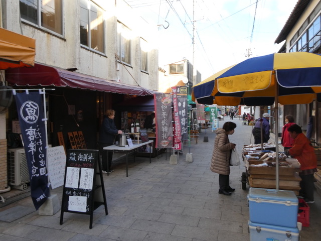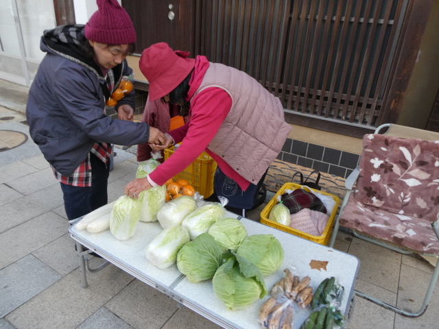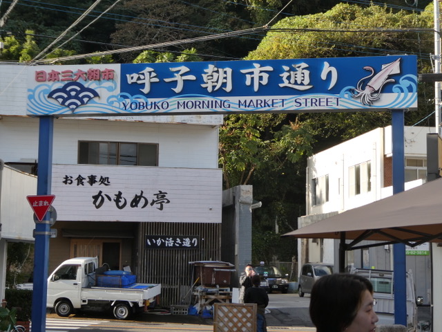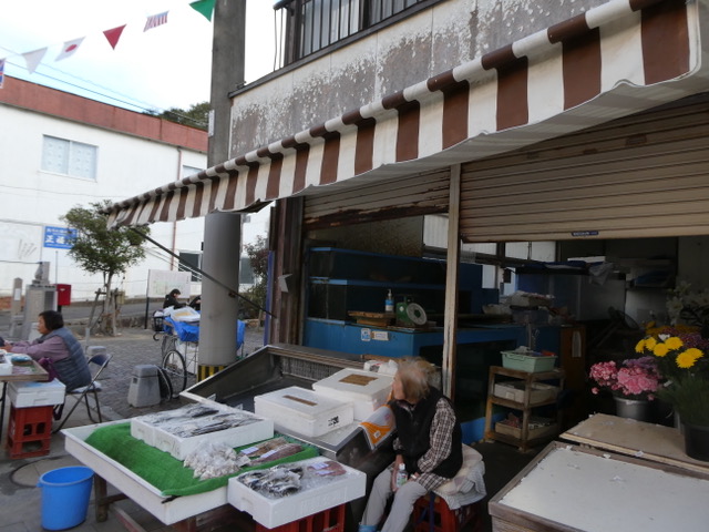 200メートルほどの朝市通りが歩行者天国になって、平日・休日とも多くの露店が並ぶ。近海でとれた海産物もあれば、野菜や果物など農産物もある。呼子の朝市の歴史は捕鯨で栄えた江戸時代までさかのぼり、鯨肉や水揚げされる鮮魚と、農家が作る農産物との物々交換が始まりだと言われているが、そうだったんだろうな、という名残は確かにある。