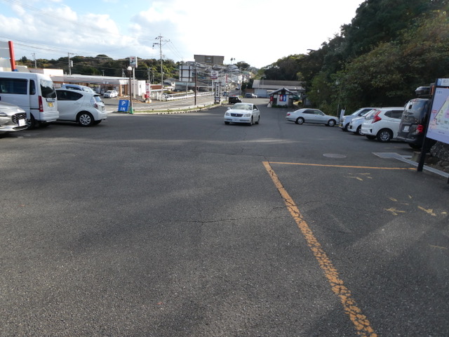 駐車場は、道沿いに細長く、傾斜があるので、仮眠する場合は平らな場所を探して。