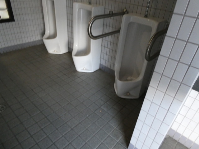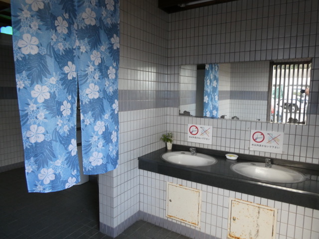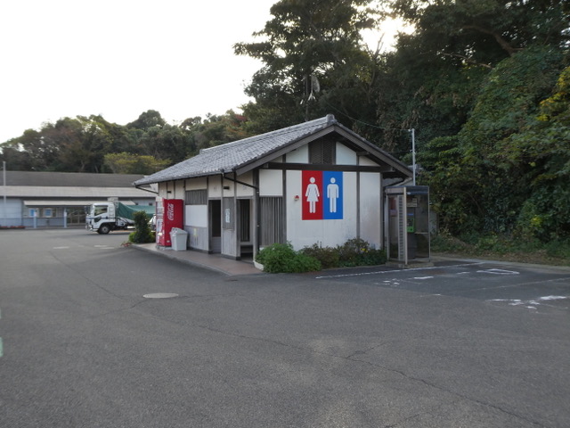 トイレは駐車場の中にポツンと。小さなトイレだが、問題ない。