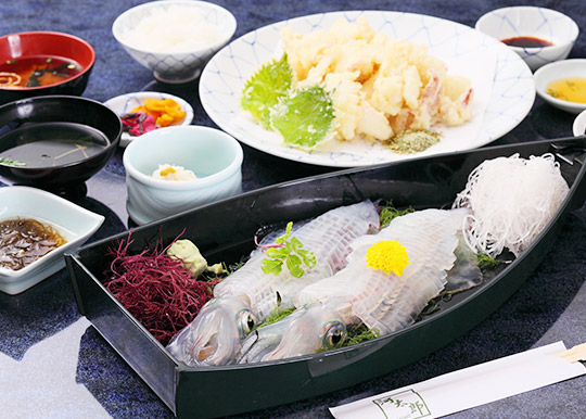 レストランでは、「イカづくしセット」「いか刺身定食」など、やはりイカを使ったメニューが人気だ。
