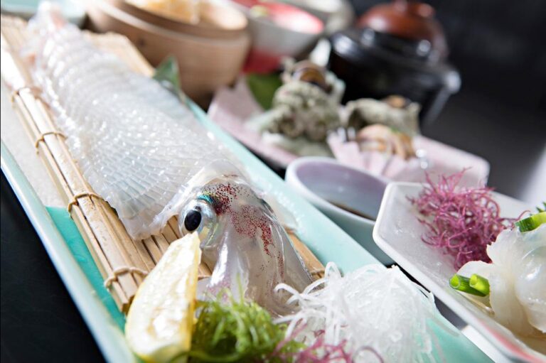 イカの旬は種類によって異なるが、そのイカの種類が複数あるので呼子では1年を通していつでも美味しいイカ刺しが味わえる。