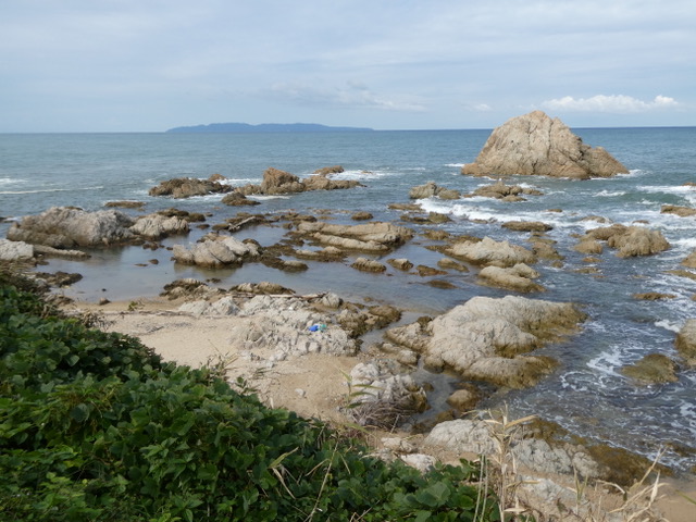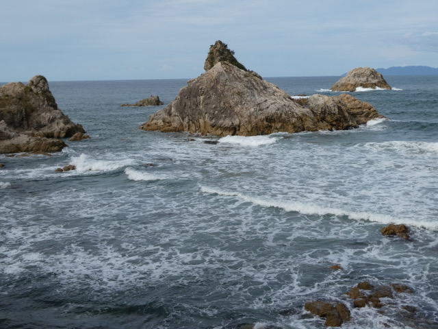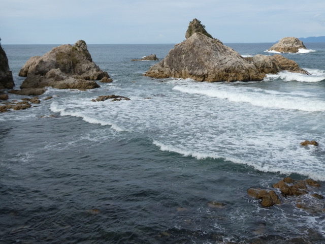 日本海の海岸は、荒波が打ちつけるゆえに海岸線が侵食されているわけで、つまり、高い「白浪」と「強風」というのが、北陸の海岸沿いに対する私の固定概念だった。