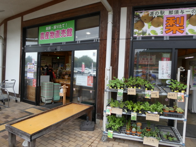 道の駅の施設は多彩で、施設群の東側から順に、観光情報館、物産館、農作物直売所、惣菜の店、蕎麦処、竹のギャラリー、那須与一伝承館が並んでいる。