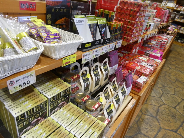 物産館では他にも「与一豆腐工房の豆腐」「よもぎ蕎麦/うどん」「御山茶」「たまり漬けの素」をはじめ、栃木県の名物、特産品が所狭しと並んでいた。